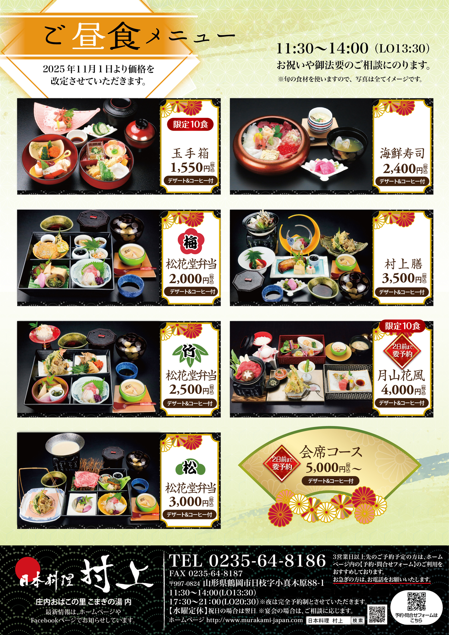 【日本料理 村上/鶴岡市『庄内おばこの里 こまぎの湯』へ移転オープンしました!】